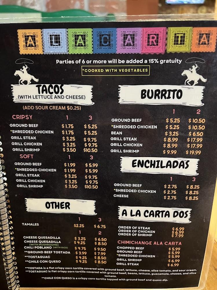 El Charro offers a diverse menu filled with authentic Mexican cuisine. Highlights include a variety of tacos, enchiladas, and creative fajitas. The meals are designed to bring an explosion of flavors to the table.